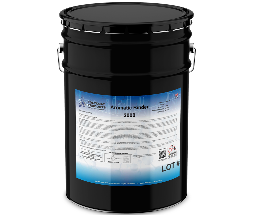 Aromatic Binder 2000 is free of MDI and TDI, making it safer from a toxicity standpoint compared to traditional polyurethanes. The binder contains isocyanates, so appropriate personal protective equipment (PPE) must be worn during application. It comes in 5-gallon pails, 55-gallon drums, and 250-gallon totes. The product has a 12-month shelf life when stored in factory-sealed containers and under recommended temperature conditions.