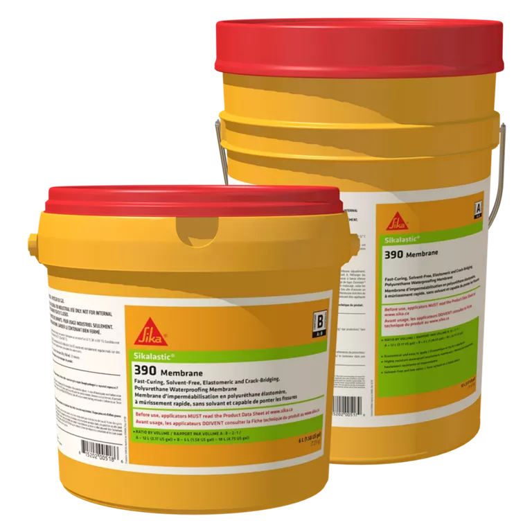 Sikalastic®-390 Membrane is a two-component, solvent-free, elastomeric polyurethane waterproofing membrane used in high-demand environments. It serves as a key component of the Sikalastic® Parking Deck Waterproofing System and Sikafloor® Industrial and Decorative Flooring Systems.