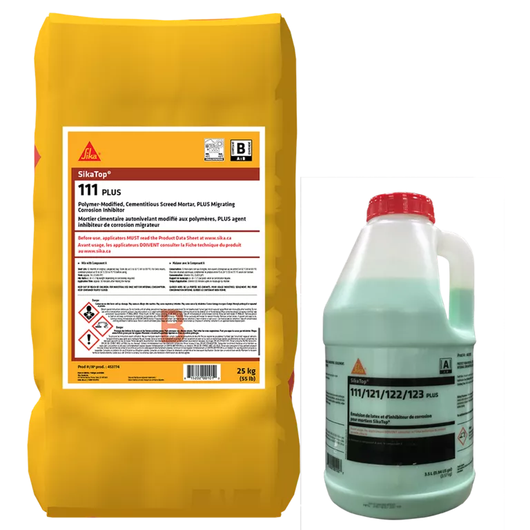 SikaTop®-111 Plus is a two-component, polymer-modified, cementitious screed mortar that includes a migrating corrosion inhibitor. It is designed for structural and cosmetic repair of concrete, especially in horizontal and form-and-pour vertical applications. This material is ideal for high-performance concrete patching, grouting of voids and cavities, and hard-to-reach repair areas. It can be used on, above, and below grade on both concrete and mortar substrates. Common applications include parking structures, industrial floors, bridges, tunnels, dams, and walkways.