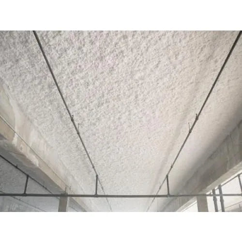 - Coverage: Coverage rates are not specified in gallons per square foot due to the fibrous nature of the material and its variable thickness. Coverage is typically calculated based on desired thickness and acoustic performance.