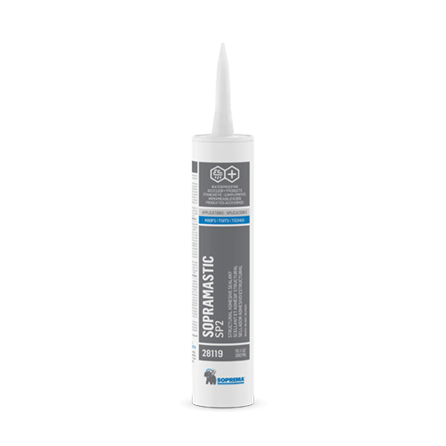 This product is ideal for sealing and bonding around complex roof penetrations such as pipes and mechanical supports. It is compatible with SBS-modified bitumen membranes (granular or sanded), organic felt, and oxidized bitumen membranes. SOPRAMASTIC SP2 can be applied to both horizontal and vertical surfaces and is suitable for use in new construction or repair applications.